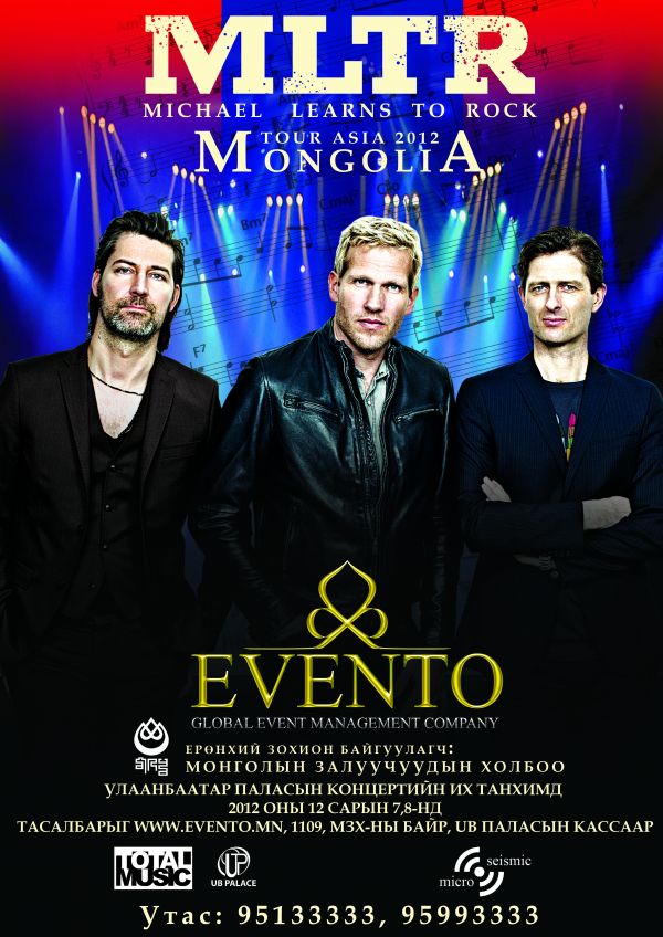 Та бидний сайн мэдэх ‘’Take me to your heart’’ синглээрээ 2006 оны хамгийн их борлуулалттай дуунуудын жагсаалтыг тэргүүлсэн “Michael Learns to Rock” хамтлаг UB Паласын концертийн их танхимыг 2 өдөр доргиох нь ээ. 12 сарын 7, 8-ны үдэш 19.00 цагт Монголын фэнүүдтэйгээ уулзах тоглолтын тасалбар эрэлт ихтэй байгаа аж. Хамгийн анх удаагаа онлайнаар www.evento.mn хаягаар захиалж авах боломжтой, өрнөдийн орнуудын жишгээр ухаалаг карт хэлбэрээр гарч байгаа тус хамтлагийн тоглолтын тасалбарын үнэ 40 000 төгрөгнөөс эхэлж байгаа юм байна. Суудлынхаа байрлалаасаа хамааран билетийн үнэ нь 40 000, 60 000, 80 000 төгрөг гэсэн ханштай байгаа хэдий ч тасалбар нь худалдаанд гарсан өдрөөсөө л эрэлт ихтэй борлогдож эхэлжээ. Мөн тоглолтын тасалбарыг Монголын Залуучуудын Холбооны төв байр, “Улаанбаатар Палас”-ын кассаар, Hi-Fi рекордсын бүх салбаруудаар болон 1109 утсаар захиалан үнэгүй хүргүүлж авах боломжтой аж. Та бидний зүрх сэтгэлд хоногшсон дуунуудаараа Монголын фенүүддээ бэлэг барихыг хүсэж байгаа тухайгаа хамтлагийн гишүүд ч өөрийн цахим хуудсандаа нийтэлжээ. Монголын фен мянга мянган залуус “Michael Learns to Rock” хамтлагийн тоглолтыг тэсэн ядан хүлээж байна.