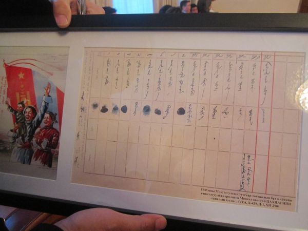1940 он гэхэд Монголчуудын тал хувь нь бичиг үсэг тайлагдсан байлаа. Иймээс санал хураалтыг гарын үсэг болон баруун гарын эрхий хурууны хээгээр баталгаажуулсан байдаг юм. Гарын үсэг зурагчдын дийлэх нь Монгол бичгээр бичсэн бол крилл үсгээр тун цөөн хүн гарын үсгээ зурсан байна.