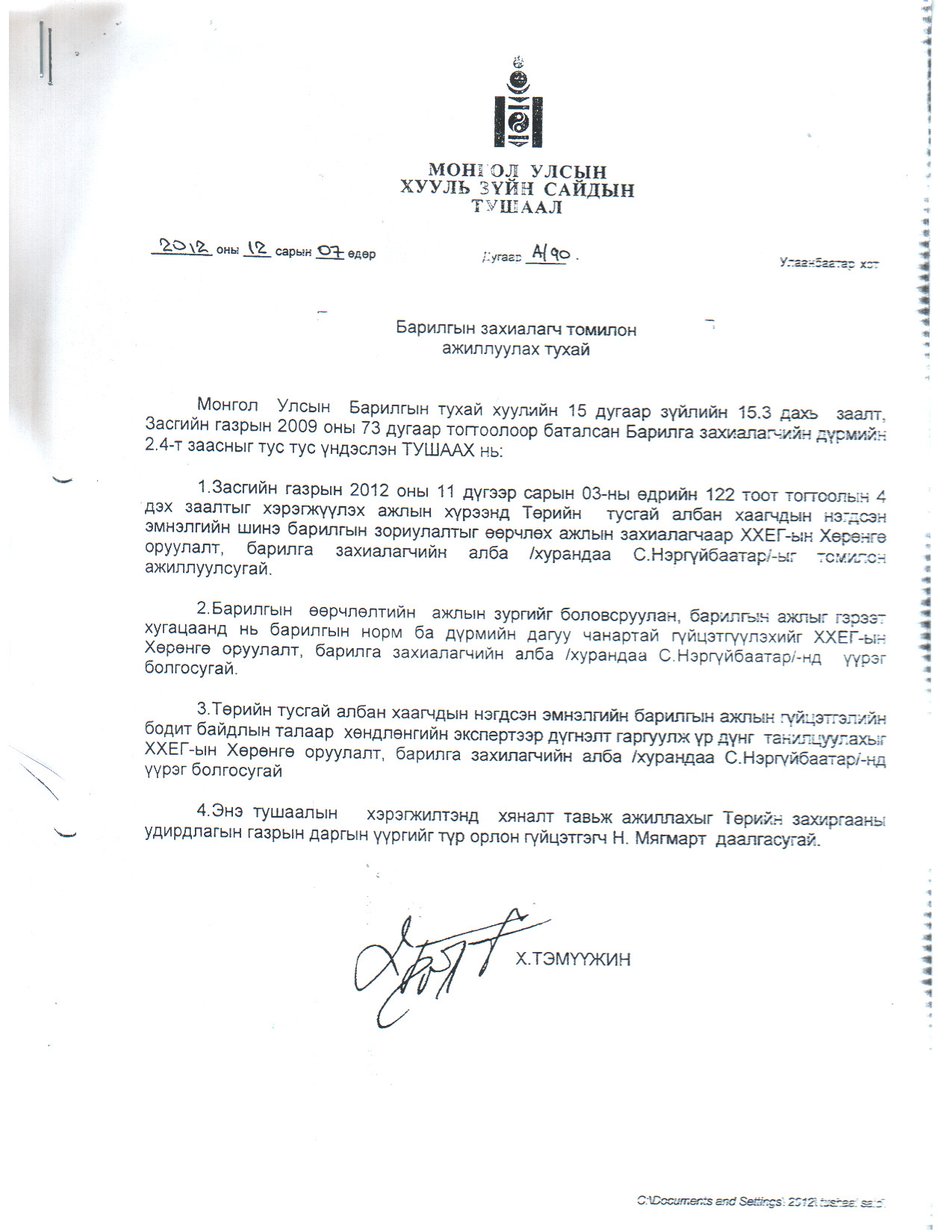 Гэтэл “Зэрэг нэмэхийн өмнө” гэдэг шиг ашиглалтад орохын өмнө Засгийн газар энэхүү эмнэлгийн барилгыг булаав. Тэгвэл энэхүү балмад үйлдэл нь өөрөө хэд хэдэн хуулийн заалтыг ноцтой зөрчиж байгаа юм. Тодруулбал Монгол Улсын Нэгдсэн Төсвийн тухай хууль, Төсвийн тухай хуулийн 6, 10, 41-р зүйлийн зарим заалт, Засгийн газрын тухай хуулийн 30-р зүйлийн ЗО.б-р заалт, Эрүүл мэндийн тухай хуулийн 4-р зүйл, Хот байгуулалтын тухай хуулийн 12.8, 21.1.3, 22.1.2, 24.1.4, 24.1.5 дугаар заалт, Зэвсэгт хүчний тухай хуулийн Зэвсэгт хүчин дангаараа эмнэлэгтэй байх тухай заалт, Барилгын тухай хууль зэрэг олон хуулийн заалтуудыг зөрчиж байна. Мөн Монгол Улсын Засгийн газрын 2009 оны 204, 73, 74 дүгээр тогтоолоор баталсан “Барилга байгууламжийн зураг төсөл боловсруулах, зөвшилцөх, магадлал хийх дүрэм”, Барилга захиалагчийн тухай”, “Барилга байгууламжийн норм, нормативын баримт бичгийн ерөнхий тогтолцоо батлах тухай дүрэм”-ээр зохицуулсан харилцаа бүхэлдээ зөрчигдөж байгаа юм. Хууль зүйн сайд минь өмгөөлөгч, хуульч ихтэй болохоор дээрхи хууль бус үйлдлүүдэд ямар “шийтгэл” оногдохыг сэтгүүлч надаар хэлүүлэлтгүй мэдэх биз. Засгийн газар ард түмнийхээ төлөө байна уу, албан тушаалтнуудын төлөө байна уу гэдэг нь эндээс харахад тун эргэлзээтэй байгаа юм. Ядаж л олон хүнийг ялладаг газар байгуулснаас олон хүний амь насыг авардаг гэгээн газар байгуулбал иргэд баярлах болно гэдгийг хууль зөрчигч Засгийн газрынхан нэг бодоод үзээрэй.