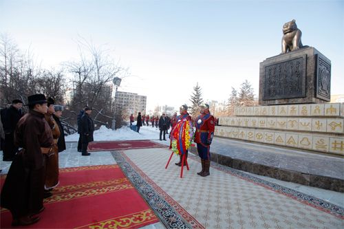 Монгол Улсын Ерөнхийлөгч Ц.Элбэгдорж, УИХ-ын дарга З.Энхболд, Ерөнхий сайд Н.Алтанхуяг нар Монгол Улс Үндэсний эрх чөлөө, тусгаар тогтнолоо сэргээсний 101 жилийн ойг тохиолдуулан Төрийн тамганы хөшөөнд цэцэг өргөв. Цэцэг өргөх ёслолд УИХ, Засгийн газрын гишүүд оролцлоо.