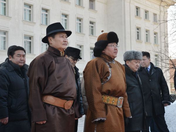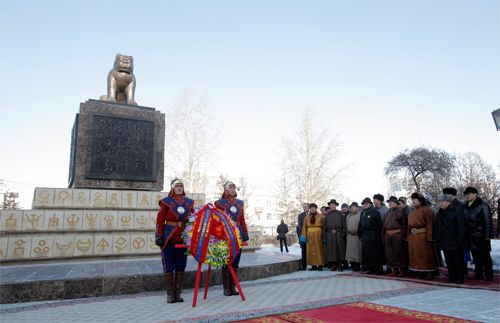 Монголын төр засгийн удирдагчид Төрийн тамганы хөшөөнд цэцэг өргөв