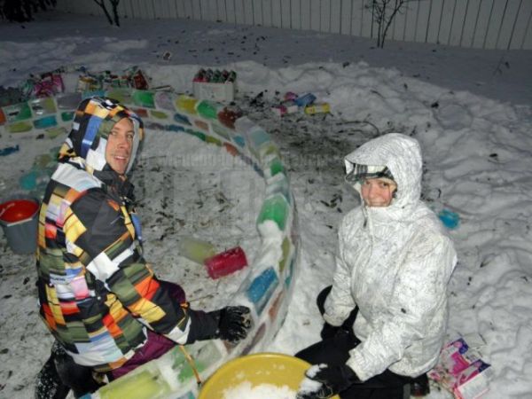 1990-д оноос эхлэн гарч эхэлсэн "Пингвин" хүүхэлдэйн дээр оцон шувуудын амьдардаг гэрийг нэгэн гэр бүл хийжээ. Ингэхдээ тэд өнгө өнгийн сүүний савыг ашигласан бөгөөд 500 сүүний св, мөсийг ашигласан байна.