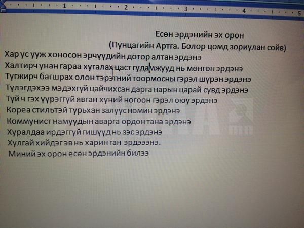 Нэрт яруу найрагч Пунцагийн Бадарчийн "Есөн эрдэнийн орон" хэмээх алдартай шүлгийн орчин үеийн хувилбарыг манай нэг жиргээч бичсэнийг толилуулж байна.