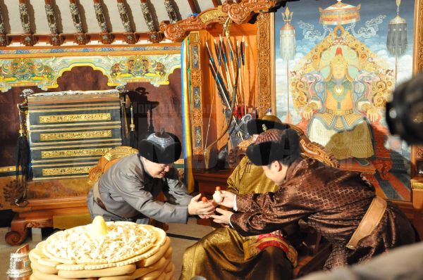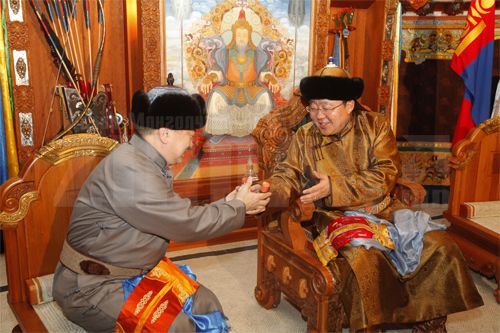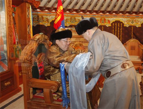 Үүний дараагаар төр нь шашиндаа, шашин нь төрдөө хүндэтгэл үзүүлэн Гандантэгчинлэн хийдийн хамба, гавж Д.Чойжамц, Дашчойлан хийдийн тэргүүн хамба Ч.Дамбажав нар Төрийн гурван өндөрлөгийн амар мэндийг мэдэж золголоо.