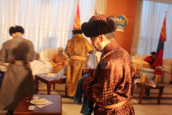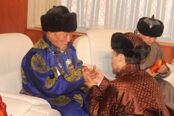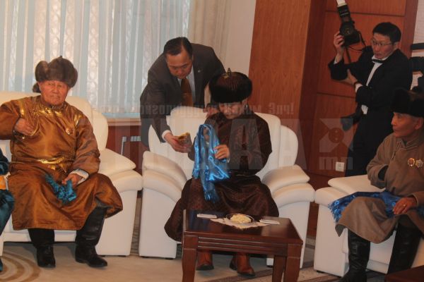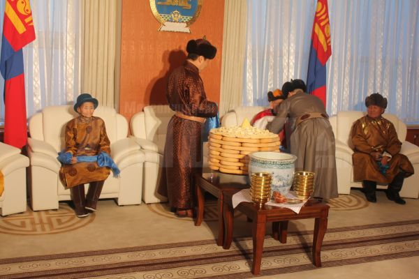 “Тийн ялгуулсан” хэмээх усан могой жилийн Шинийн нэгний билэгт сайн өдрийн наран ургахтай зэрэгцэн төрийн гурван өндөрлөг Төрийн их хүндэтгэл Есөн хөлт цагаан тугандаа мөргөж, Төрийн ёслол хүндэтгэлийн гэр өргөөнд төрийн золголт хийгээд өндөр настан азай буурлуудаа хүндэтгэн золголоо.Төрийн гурван өндөрлөг ахмад настны төлөөлөлтэй золгож, дурсгалын зураг татуулсны дараа Монголын ард түмэндээ мэндчилгээ дэвшүүлсэн юм. Монгол Улсын Ерөнхий сайд Н.Алтанхуяг хэлсэн үгэндээ “Луу жил Монголын маань ард түмэнд ээл ивээлтэй жил байлаа. Шинэчлэлийн Засгийн газар усан могой жилд улсынхаа хөгжлийг урагшлуулахын төлөө хичээн ажиллах болно. Түмэн олон маань ч гэсэн эрвийх дэрвийхээрээ хөдөлмөрлөж, төр түмэн хамтын хүчээ нэгтгэе” гэлээ. Түүнчлэн Засгийн газрын тэргүүн “Цагаан сарын баяр бол ахас ихсээ хүндэтгэдэг ураг төрлийн дээд баяр. Энэ баяраар монгол түмэн минь нэгэн нас нэмлээ гэж, хахир өвлийг мэнд давж урин хавартай энх золголоо гэж ураг төрлөөрөө цугларч ирэх сайхныг зөгнөн ярилцдаг. Цагаан сэтгэлт зон олон минь цагаан идээгээ дээжлэн Сар шинэдээ сайхан шинэлээрэй” хэмээн ерөөлөө.
