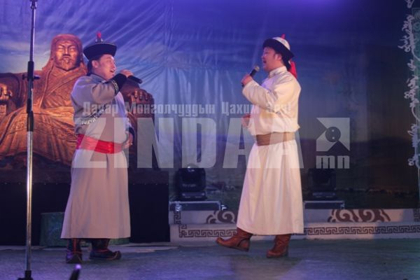 ОХУ-ын Халимаг улсын дуучин, жангарч Дима Шараев, ОХУ-ын Тува улсын төв театрын гавьяат жүжигчин, дуучин, хөөмийч Саидаш Монгуш, ОХУ-ын Буриад улсын дуучин Чингис Раднаев, Өвөрмонголын “Хөх хээр” хамтлагийн дуучин М.Баясгалан зэрэг алдартай дуучид үзэгчидтэйгээ цуг дуулж хуурдсан энэ үдэш Монголоо гэх омогшил хэн бүхний зүрхэнд бадарсан нь лавтай. “Ижий минь, ижий минь”, “Тоонот нутаг”, “Ээждээ”, “Дангина”, “Нартын замаар явмаар байна”, “Нутаг”, “Би Монгол хүн” зэрэг дуунуудыг бид эртнээс мэдэх билээ. Халимаг, Тува, Буриад, Өвөрмонголын дуучид их эзэн Чингис хааныхаа хөшөөнд хүндэтгэл үзүүлэн мэхийж “Хамаг Монголчууд бид хэдийгээр хэл, соёл өөр болсон ч хэний үр сад гэдгээ мартаж болохгүй” хэмээн хоолой зангируулан дуулж байсан нь үзэгч олныг өөрийн эрхгүй уярааж, нулимс унагахад хүргэсэн.