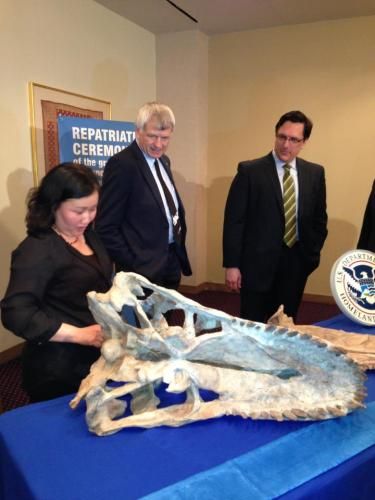 АНУ-ын Нью-Иорк хотод байрлах "Хэритаж Аукшион"-ы дуудлага худалдаагаар зарагдах гэж байсан Тиранозаурус Батаар үлэг гүрвэлийн араг ясыг Монголынх гэдгийг холбогдох байгууллагууд батлаад авсан. Монгол Улсын Ерөнхийлөгчийн нэхэмжлэлийн дагуу Тиранозаурус Батаарыг Монголд авчрахаар өнгөрсөн долоо хоногт Монголын албаны хүмүүс Нью-Йорк хотод очсон. Тэгвэл өнөөдөр АНУ-ын тал манай төлөөлөгчдөд уг олдворыг албан ёсоор хүлээлгэж өглөө.