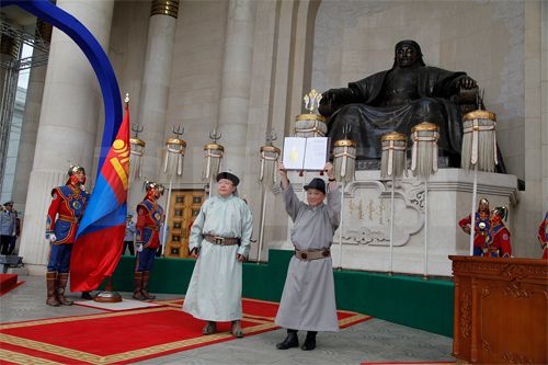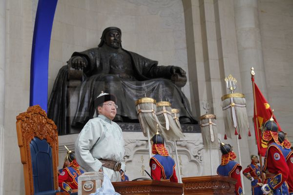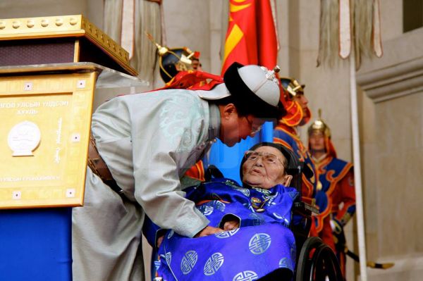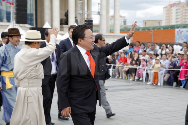 Монгол Улсын Ерөнхийлөгчийг тангараг өргөх ёслолын эхэнд эзэн Чингис хааны хөшөөний өмнө УИХ-ын хүндэтгэлийн чуулган хуралдсан юм. Уг чуулганд Ерөнхий сайд Н.Алтанхуяг, Засгийн газрын гишүүд, Үндсэн хуулийн Цэц, Улсын дээд шүүхийн гишүүд, гадаад, дотоодын зочид төлөөлөгчид оролцлоо. Гадаадын зочдын дунд Бүгд найрамдах Польш улсын Ерөнхийлөгч асан, Нобелийн шагналт, Польшийн ардчиллын бэлгэ тэмдэг Лех Валенса, АНУ-ын Төрийн нарийн бичгийн даргын ахлах зөвлөх Томика Тиллман, ОХУ-ын Холбооны зөвлөлийн нэгдүгээр орлогч дарга А.П.Торшин, БНХАУ-ын БХАТИХ-ын Байнгын хорооны дэд дарга Сянба Пинцуо, Японы Үндэсний аюулгүй байдал, хулгайлагдсан иргэд, байгалийн гамшгийн асуудал эрхэлсэн сайд Фүрүя, Энэтхэг улсын Шинэ болон сэргээгдэх эрчим хүчний сайд Ф.Абдулла, Францын Хөдөө аж ахуй, хүнс, ойн асуудал эрхэлсэн төлөөний сайд Г.Гаро, Ираны Газрын тосны сайд Р.Гасеми, БНСУ-ын Ерөнхийлөгчийн нарийн бичгийн дарга Жү Чол Ги нарын хүмүүс байв.