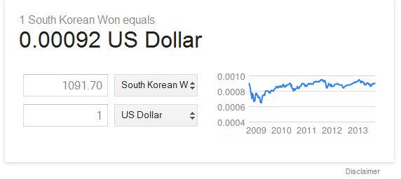Солонгос улсад - 1$=1091вон