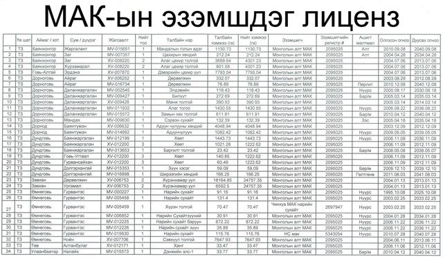 Ulsiin hurunguur nootsiig ni togtooson MAK-n medeld baigaa ord gazriin litsentsuudiig ashigt maltmaliin huulind oorchlolt oruulah zamaar ulsiin medeld butsaan avah heregtei