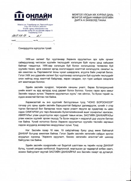 onlain parlamentad hural gej eh heleeree zuv bichih chadvartai seheeten alga uu, daanchdee haramsaj bna
