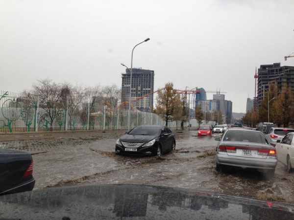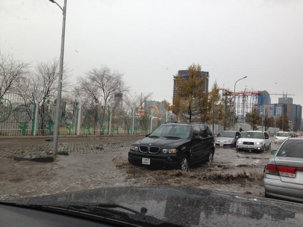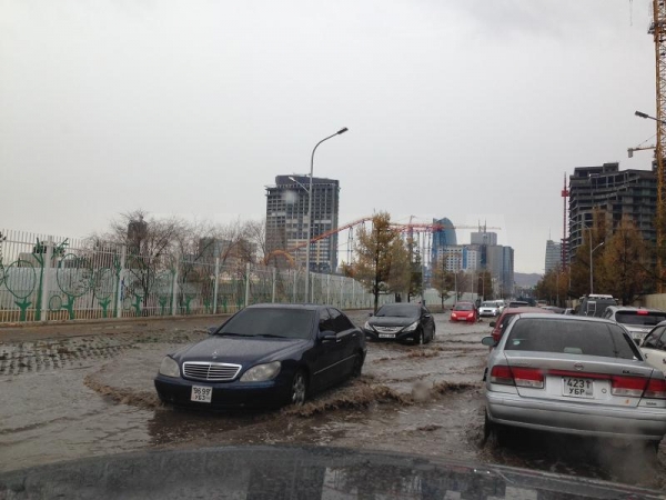 Хэдэн тэрбумын өртөг зардал гарган байж зассан, сайжруулсан гэгдэх зам нь ганц хоёр удаагийн цас борооны ая даахгүй тараа таниулдаг жишиг энэ удаа ч давтагдлаа. Өчигдөр оройноос эхлэн орсон борооны улмаас ГХЯ-ны уулзвараас ЗЦГ-ын уулзвар хүртэлх авто зам усанд автан замын хөдөлгөөнд оролцогчдод хүндрэл учруулаад байгааг та харж байна. Ер нь бол энэ хэсгийн зам нийслэлийн бусад чанаргүй замуудын ажил бороо цасанд “живж” ирсэн. Тиймээс ч өнгөрсөн хавар энэ хэсгийн замын шинэчлэлтийн ажлыг "Экспресс зам" ХХК гүйцэтгэжээ. 1,295,720.2 мянган төгрөгийн өртөг зардлаар замын ажлыг гүйцэтгэсэн аж. Гэтэл нөгөөх их бүтээн байгуулалтынх нь байж байгаа царай нь энэ.