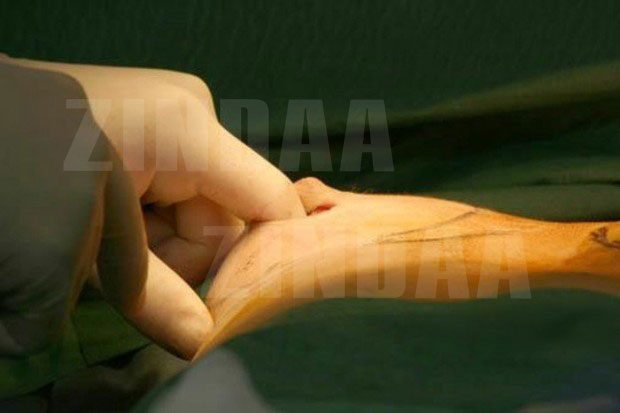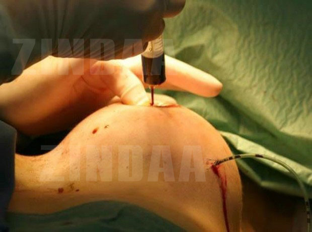 Марль хийн цус болон нөжийг шингээн авч цэвэрлэж байгаа байдал. Дараагаар нь марлта гаргаж авна.