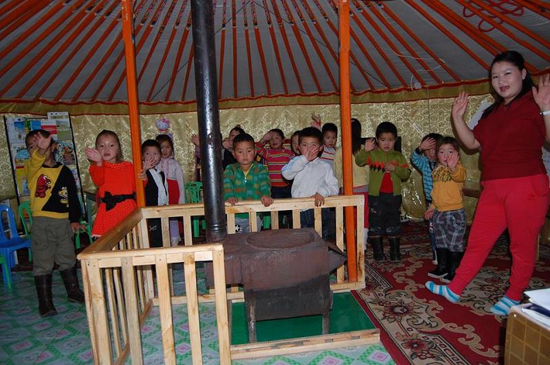Мөнххаан суманд хүрч ирээд, хамгийн түрүүнд хүүхдийн цэцэрлэгт зочиллоо. Эрхлэгч Д.Ариунмөнх нь "Бумбаалай" хэмээх цэцэрлэгээрээ нэрлэсэн блог хөтөлж, твиттер, фэйсбүүкийг идэвхтэй ашигладаг нэгэн бөгөөд цахим ертөнцөөс "Талын түрлэг" аялалын талаар мэдээлэл авснаар бидэнтэй холбогдсон юм. Тус цэцэрлэг одоогоор 250 хүүхдийн багтаамжтай. Тал хувь нь байшинд байрладаг бол үлдсэн тэн хагас нь гэр цэцэрлэгт байрладаг аж. Тус бүртээ 25 хүүхэд багтаасан, халуу дүүгсэн гэр ангиудад ороход, ээж аавын эрдэнэ, эх орны ирээдүй болсон эгдүүтэй бяцхан үрс дуулж, бүжиглэж, үлгэр уншсаар биднийг угтсан юм. Халуун дулаан уур амьсгалтай, аз жаргал гийх эдгээр гэрүүдэд нэг зүйл анхаарал татлаа. Хүйтэн, сэрүүний улирал тул галлахаас өөр аргагүй. Төмөр зуухыг тойруулан модон хашлага хийсэн ч амсар тал нь задгай харагдсан юм. Багшийн анхаарал өчүүхэн төдий өөр зүгт хандах агшинд хэн нэгэн нь халуун зууханд гар, хөлөө хайрахгүй гэх баталгаа алга. Энэ мэт сул тал гэр цэцэрлэгт байх тул шинэ байр ашиглалтад орохыг хүлээсэн хүн олон. Сумын төвд баригдаж буй цэцэрлэгийн барилга ашиглалтад орсноор гэр цэцэрлэгийн хүүхдүүд тохь тухтай байранд сурч хүмүүжин, тоглож наадах боломжтой болох нь. Ямартай ч өөрсдийн бололцоогоо дайчлан цэцэрлэгт хамрагдах хүүхдийн тоог нэмэгдүүлж байгааг нь үнэлүүштэй санагдав. Одоогийн байдлаар сумынхаа цэцэрлэгийн насны нийт хүүхдийн 70 орчим хувийг цэцэрлэгт хамруулаад байгаа нь харьцангуй өндөр үзүүлэлт аж.