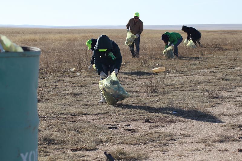 Өмнө хэлсэнчлэн бид эко аялал хийх тал дээр онцгой анхаарсан. Баруун-Уртаас баруун урагш 60 км зайд “Жарын овоо” хэмээн нэршсэн газар хожим Чонын хөшөө босгосон байдаг. Зураач, барималч н.Оргилсайханы бүтээсэн эл хөшөө ирж, буцаж буй хүмүүсийн аян зам хийморьтой байхыг бэлгэдэх аж. Хөшөөний хажуугаар өнгөрөх аялагчид энд заавал саатан зогсох агаад тэдний овоо болон хөшөөнд өргөсөн “өргөл”-үүд салхинд хийсэн, хог болж, орчны газрыг бохирдуулсан байдалтай байв. Бид хотоос гарсан цагаасаа л аялалын турш буусан газрууд, уул овооныхоо дэргэд хуримтлагдсан хог хаягдлуудыг түүж цэвэрлэж явсан юм. Авч гарсан хоёр боодол хогийн уут маань дуусч, замын дэлгүүрээс нэмж тор худалдан авч, хогоор дүүргэж явлаа. Хог хаях зориулалтын цэггүй газар нь бид торонд хийсэн хогнуудаа боломжоороо машиндаа ачиж яваад, төв суурин газарт хүрэхдээ хогийн бункерт хийж байв. Зарим газар хогийн бункер байрлуулсан ч хэмжээ нь багадсанаас савнаасаа хальж, салхинд туугдан, талаар нэг хөглөрнө. Томоохон бункер байрлуулсан ч гэлээ ойр ойрхон ачиж зөөвөрлөж байхгүй бол ялгаагүй л амсраа хальж, тарна гэдгийг орон нутгийн удирдлагуудын чихэнд хүргээд амжсан.