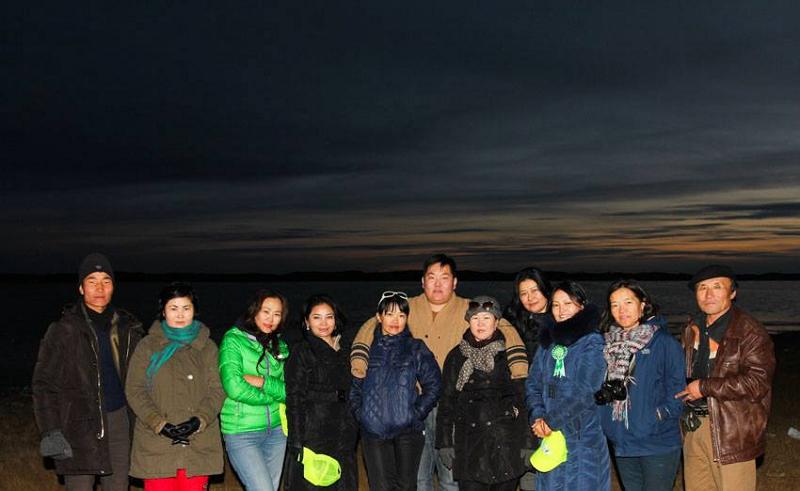 Уг нь бид хун шувууд хамгийн олноор чуулсан газар буусан боловч баярлаж хөөрсөн бидний дуу чимээнээс шувууд үргэн дайжиж, алгуурхан цаашилна. Гэрэл зургийн хоббитой “хашир” Анжгай маань нуурын эрэг даган, шувуудын хойноос сэмхэн гэтэх нь ан хөөхөөр улайрсан анчин мэт харагдана. Би ч тэсэлгүй хойноос нь дагалаа. Нуурын эрэг намагтай, усны гутал өмсч гарсан тулдаа намаг дундуур туучсаар Анжгайг гүйцэж очлоо. Мань хүн усны гуталгүй, өмднийх нь шуумаг дороосоо төө хэртэй норсон байсан ч түүнийгээ анзаарах сөхөөгүй шувуудтай хөөцөлдөнө. Намайг дэргэд нь очиход сая л анзаарч хараад “Би ч их олзтой явна шүү” хэмээн сэтгэл дүүрэн өгүүлж байлаа.