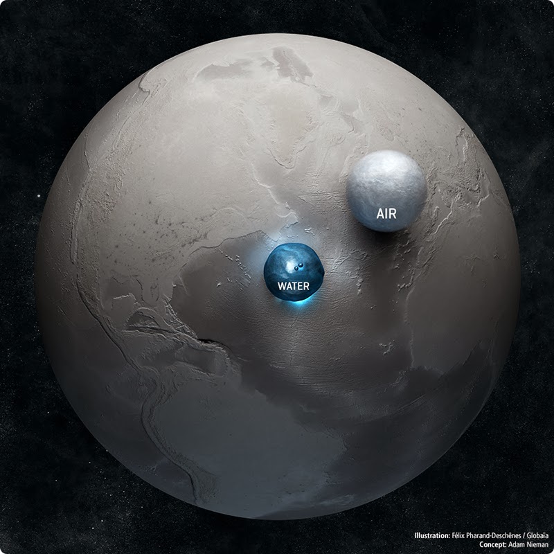 Та бүхэн дэлхийн дээрх нийт ус болон агаар дэлхийн масстай харьцуулахад хэр их гэж бодож байна. Танд ямар нэг баримжаа байхгүй бол доорх зургийг сонирхоорой.