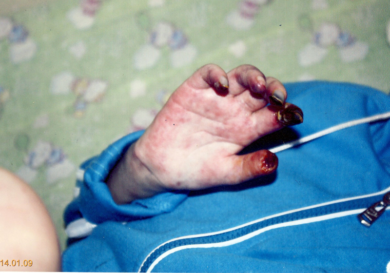 -Анх хүүхдээ Эх нялхсын эмнэлэгт аваад ирэхэд хэл нь бамбайж хавдсан байсан. Одоо гарын бүх хуруу нь үхжиж, хоёр хурууны нэгдүгээр үеийг тайруулаад байна. Мөн хөл нь хүртэл үхжээд эхэлсэн. Миний охин сахуу татрангийн вакцин хийлгэснээс болж цусанд нь бохир орж цусны бүлэгнэл үүссэн, одоо биеийн байдал хүнд байна.