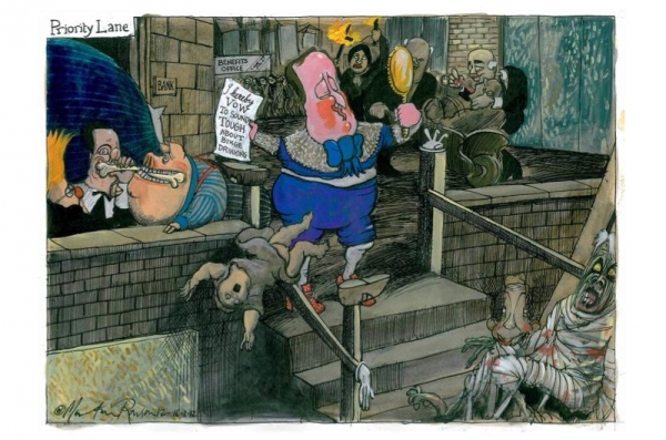 Архинд автсан нийгмийг XIX, XX зууны эхэн үеийн зураачид ингэж шогоор дүрсэлжээ. Гэхдээ шог гэхээсээ эмгэнэлт бүтээл юм шиг санагдав.