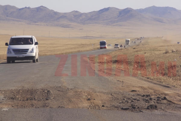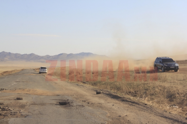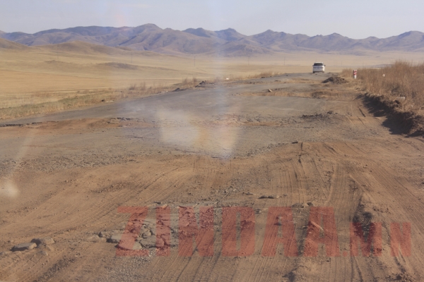 Улаанбаатараас Дархан-Уул аймаг чиглэсэн автозамаар зорчиход иргэдэд ихээхэн хүндрэлтэй байна. Зурагт харуулсан байдал өнгөрсөн долоо хоногийн сүүлч үеийнх юм. Одоо ч энэ хэвээр. Өнгөрсөн сараас цаг агаар дулаарч, газрын хөрс гэссэнээс замын эвдрэл гарсан бололтой. Баруунхараагаас цааш 20 орчим км явахад замын эвдрэл улам бүр нэмэгджээ. Бүр 50 хүрэхгүй метр зайтай асфальтан хуулга хөрстэйгөө эргэсэн, энд тэндгүй овон товойсон эвдрэл давтагдсан байна. Зарим хэсэгт цементтэй шороо овоорсон байхад зарим хэсэг замын асфальтан хуулга хэдэн хэсэгт хуваагдаж, шороон зам бий болчихож. Жижиг автомашины жолооч нар байн байн зогсож эвдрэлээс үүссэн том булыг холдуулж хаячихаад цааш хөдөлж байгаатай хэдэнтээ тааралдав. Ийм нөхцөлд автозамын осол гарахыг үгүйсгэхээргүй юм байна.
