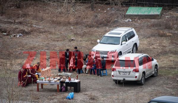 Оргил рашаан сувиллын хашаан дотор зүүн хойд буланд нь болж буй үйл явдлыг танд хүргэж байна. УИХ-ын гишүүн асан, Ерөнхий сайдын зөвлөх Кёкүшюзан Батбаяр, гэргий МУГЖ Т.Баясгалан, улсын заан Ч.Батзориг нар ямар учиртай ийнхүү суугаа юм бол. Арай барилга бариулах шав тавиулж байгаа юм биш биз гэх хардлага хэнд ч төрөх биз. Шашин шүтлэгтэй эрхэм гэр бүлдээ засал ном айлдуулж байна гэж ойлгож болох ч яагаад заавал сувилалын хоосон хашааг сонгосон нь тун их сонирхол татаж байгаа юм