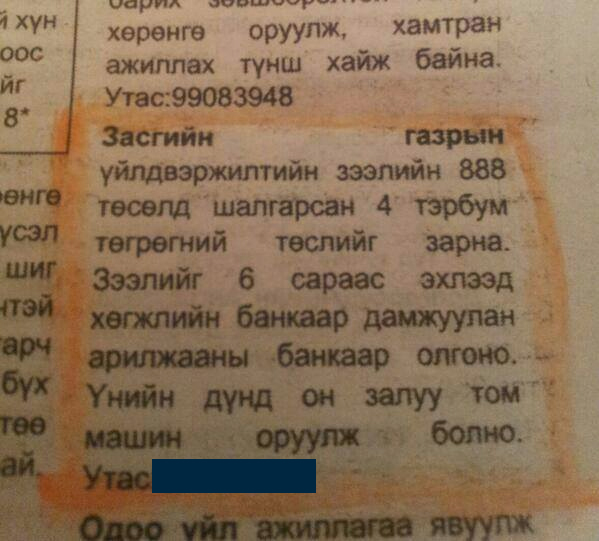 Ингээд төсөл зарна гэсэн дуулиант зарыг тавьсан хүнтэй утсаар холбогдлоо. Утсыг олон дуудуулалгүй эмэгтэй хүн авч байна