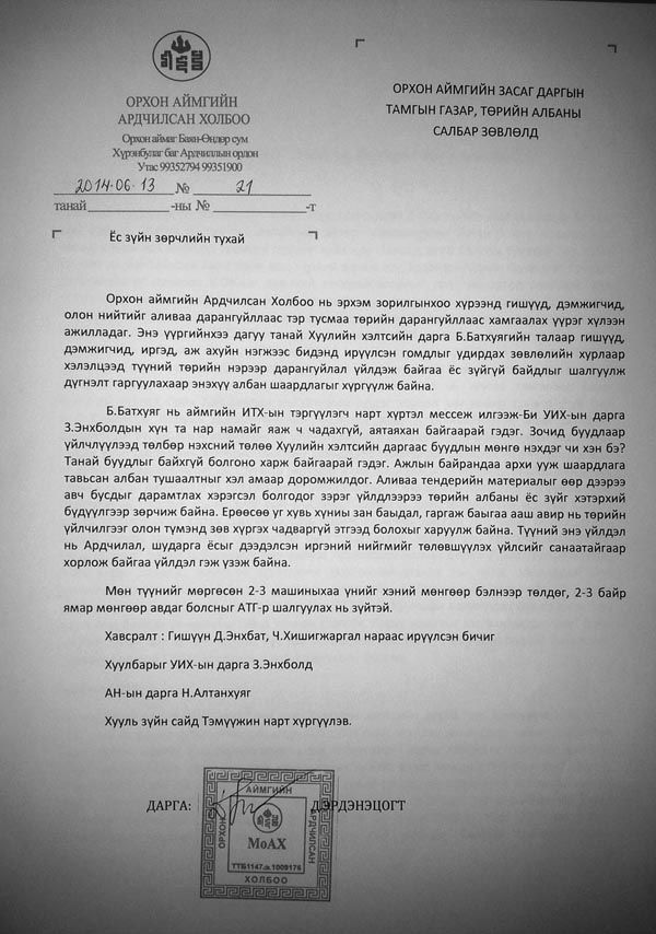 НИТХ-ын бүлэг албан хаагчид улсын мөнгөөр гадаадад зугаалсан хэргээ хүлээгээд буй. Харин үүний дараахан мөн л хилийн чанадад аяласан иөнгө төгрөгтэй холбоотой асуудал яригдаж эхлэв. Тодруулбал Орхон аймгийн ЗДТГ-ын дарга В.Сумьяасүхийн шийдвэрээр “туршлага судлах нэрийн дор “АНУ-д “7 хоногийн сургалт”-д хамрагдахаар Орхон аймгийн ЗДТГ-ын Хууль зүйн хэлтсийн дарга Б.Батхуяг, Төрийн сангийн хэлтсийн дарга Б.Мөнх-Эрдэнэ, Худалдан авах газрын дарга Л.Оюунгэрэл, Цагдаагийн газрын дарга Б.Даваазул, ТЗУХ-ийн ажилтан Баянжаргал нар хилийн чанад руу мордсон байна. Эдгээр нөхөд Засгийн газрын 147 дугаар тогтоолын “Гадаад томилолтыг хязгаарлах, зардлыг хэмнэх, томилолтоор явах хүмүүсийн тоог цөөлөх” зэрэг заалтыг зөрчсөн явдал юм.