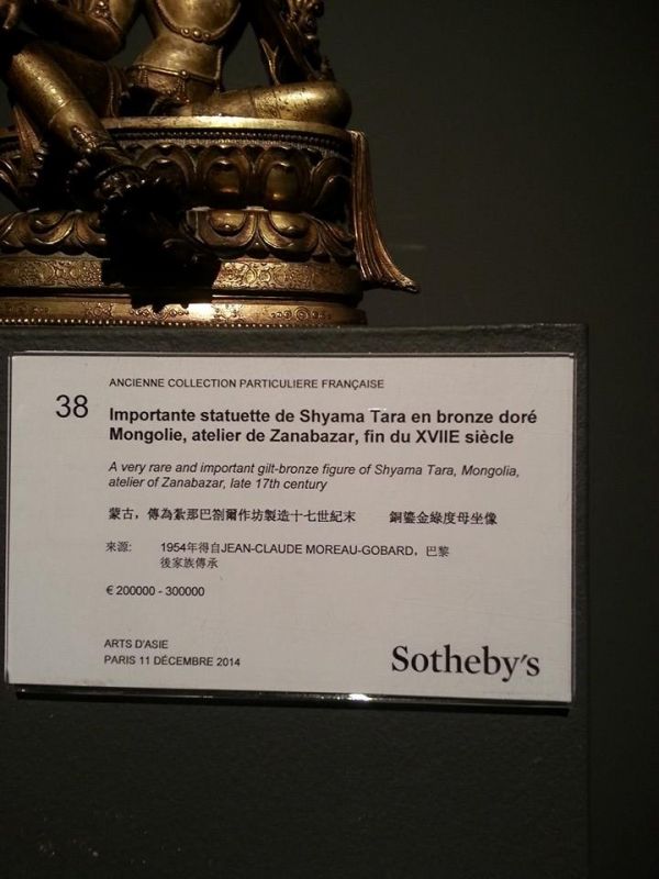 Өндөр гэгээн Занабазарын 21 Дарь эхийг урласан баримал, хөшөөнүүд дэлхийн суут бүтээлд тооцогддог билээ. Монголдоо ч тэр, гадаадад ч тэр ховор, нандин урлагийн бүтээл гэгддэг нэгэн Дарь эхийн барималыг маргааш Парист дуудлага худалдаагаар зарах гэж байна. Энэ хүрэл цутгамал хөшөөг 17-р зууны сүүл үед хийсэн гэдгийг эрдэмтэд тогтоожээ.