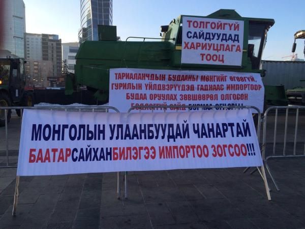 Чингисийн талбай дээр улаан буудайн тариалан эрхлэгчид жагсаж байна. Тэд Засгийн газрыг гаднаас буудай импортлохыг эсэргүүцэж байгаа бөгөөд өөрсдийн тарьсан буудайг гологдохооргүй чанартай гэж үзэж байгаа юм. Тариаланчид дотоодын үйлдвэрлэлээ 100 хувь хангах чадвартай гэж байгаа ч Засгийн газраас чанартай буудай оруулж ирэхээр болсон.