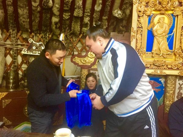 Жүжигчин Б.Амарсайхан Монгол улсын гавьяат тамирчин Хакүхо М.Даваажаргалд өөрийн гарын бэлгийг хадагны хамт барьсан байна. Тэрбээр энэ тухайгаа өөрийн цахим хуудаснаа бичсэн бөгөөд