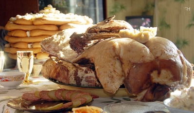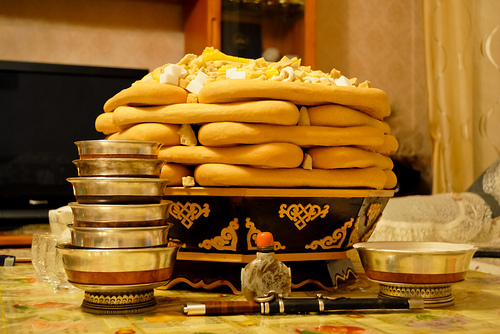 Хаврын тэргүүн сарын шинийн нэгэнд цагаан сарын баярыг тэмдэглэхдээ ёслол хүндэтгэлийн идээ, ундаа бэлтгэн, золгож шинэлдэг. бөгөөд цагаалгын ёслолыг өглөө ургах нарнаар туулай цагт эхлэн үйлддэг. Шинийн нэгний идээний үндсэн хэсэг нь давхарлан өрсөн бяслаг, эсвэл хавсай, ул боов юм.