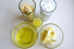 Амттан бэлдэхэд бидэнд бүйлсний гурил, нунтаг сахар, хүнсний өгнө оруулагч (минийх шар өнгөтэй), өндөгний шар,цагаан шоколад болон нимбэгний шүүс хэрэгтэй.