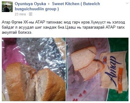 Бидний өдөр тутам хэрэглэдэг хүнсний бүтээгдэхүүний нэг яах аргагүй талх байдаг. Тэр дундаа Атар Өргөө ХК-ны Атар талхыг ард иргэд түлхүү авч хэрэглэдэг гэхэд болно. Харин тус компанийн талхнаас мод гарч ирсэн талаар нэгэн иргэн цахим хуудсандаа нийтэлжээ. "Атар Өргөө ХК-ны АТАР талхнаас гарч ирэв. Хүмүүст нь хэлээд байдаг л асуудал шиг хандаж байна. Цааш нь тараагаарай АТАР талх аюултай болжээ" гэсэн байна. Ганцхан Атар талхнаас энэ удаад ингэж мод гарч ирж байгаа хэрэг биш юм. Өмнө нь бас талхнаас чулуу, төмөр гэх мэт зүйлүүд гарсан тохиолдлууд байдаг. Манай улсад хүнсний аюулгүй байдал гэж зүйл үнэхээр алга. Талхан дотроос янз бүрийн зүйл гарч ирж байгааг хог шороотойгоо холиод талхаа хийгээд байдаг юм байна гэж ойлгохоор. Аль эсвэл талхны орц найрлаганд чулуу, сонин, мод гэх мэт зүйлүүд ордог болсон юм болов уу?