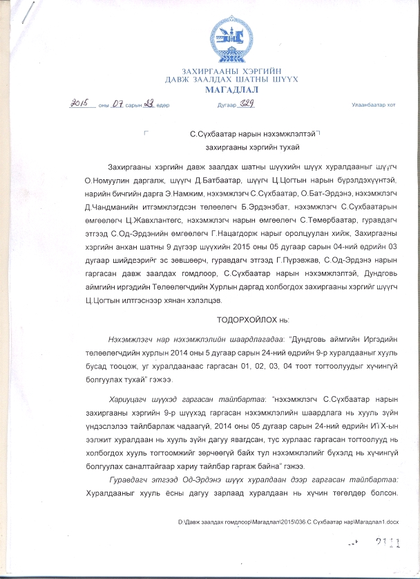 Хуульгүй мэт аашилж буй дарга нарт шүүх даруулга өглөө