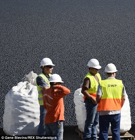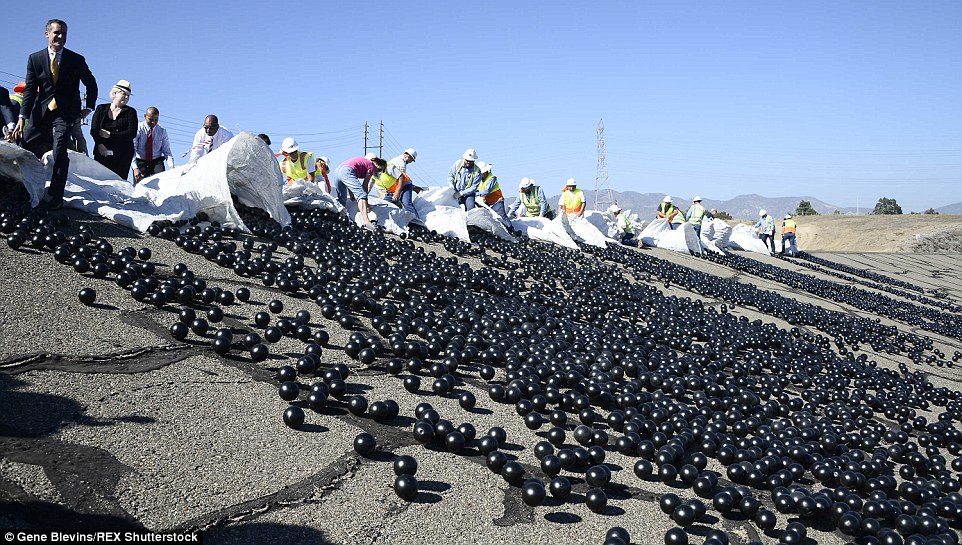 Тиймээс усыг хамгаалахын тулд шинэ арга сэдэж 96 сая хуванцар бөмбөлөг бүтээж, усанд тавьжээ. Энэхүү хар өнгөтэй 96 сая хуванцар бөмбөлөг усны гадарга дээр хөвөн нарны цацрагийг өөртөө шингээж, Лос-Анжелес хотын иргэдийн 175 акр талбай бүхий 300 сая галлон усыг хамгаалж байна. Хар бөмбөлөгнүүдийг усанд тавих ажилд ихээхэн ач холбогдол өгсний ганцхан илрэл нь хотын дарга өөрийн биеэр оролцсон явдал байв. Нэг ширхэг нь 36 центийн үнэтэй энэ бөмбөлөг монголоор бараг 800 төгрөгийн үнэтэй. Цагаа тулахаар балга ус алт битгий хэл амьнаас илүү үнэтэй гэдгийг аль хэдийнэ ухаарсан АНУ 96 саяыг 800-гаар үржихээр гарах их хэмжээний мөнгийг усанд тоох ч үгүй зарцуулж байна.