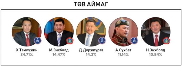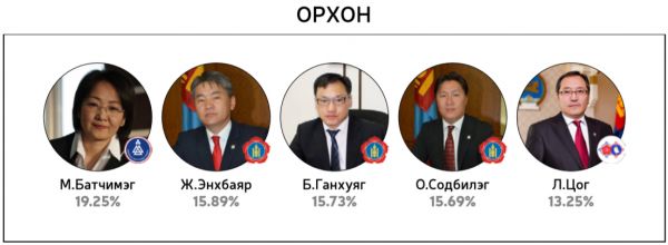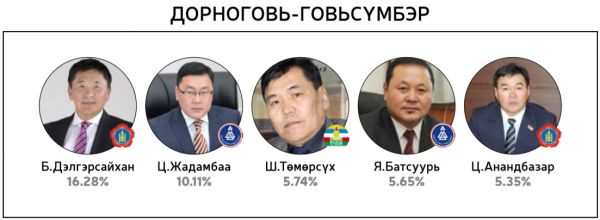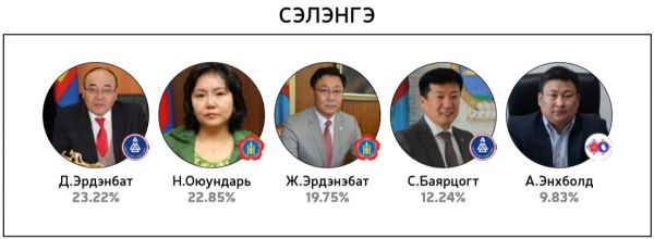 Нийт 60 хоногийн хугацаанд 300 гаруй горилогчдын дундаас 14144 хүний саналаар тодруулсан “Миний сонгох-76” шалгаруулалтад хамгийн олон санал авсан 10 топ улс төрч болон УИХ-ын 26 тойрогт нэр дэвшихээр горилогчдоос олон саналтай таван улс төрчдийг авсан саналын хувиар нь жагсаасныг ийнхүү хүргэж байна.