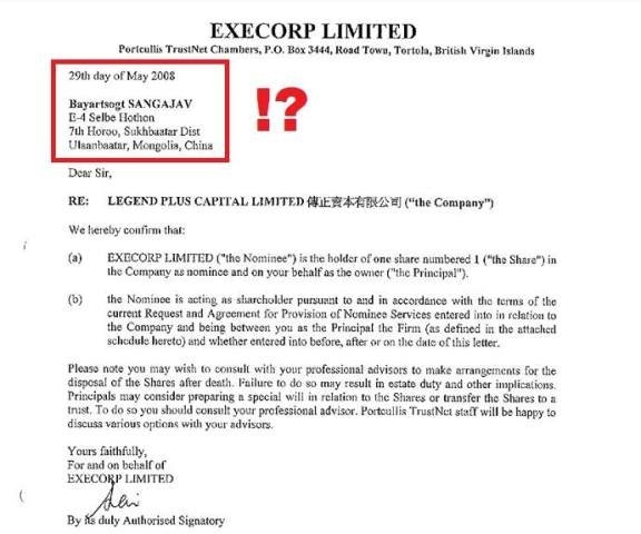 Тухайн үед С.Баярцогт оффшор буюу татвар, хяналт, нууцлалын хамгийн таатай, хялбар нөхцөлийг санал болгодог бүсэд байгуулсан нууц компанийнхаа баримт бичиг дээр улсынхаа нэрийг Хятадын Монголын Улаанбаатар гэж тэмдэглүүлсэн нь олны эгдүүцлийг хүргэсэн. Тэрбээр үүнийг тухайн бүртгэл хийсэн компанийн буруу хэмээн мэлзэж, данс нээлгэж, гарын үсэг зурахдаа CHINA гэсэн бичгийг хараагүй хэмээн өөрийгөө хаацайлаад өнгөрсөн. Гэвч хэн мэдлээ бид түүний дэргэд байгаагүй...