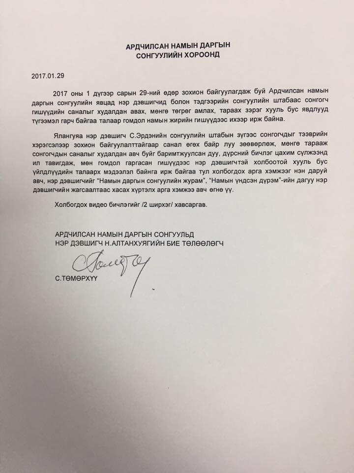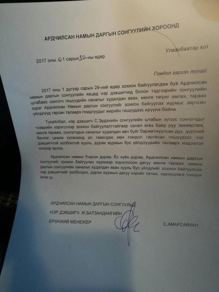АН -н гишүүд намаасаа гарч эсэргүүцлээ илэрхийлэх хэрэгтэй.