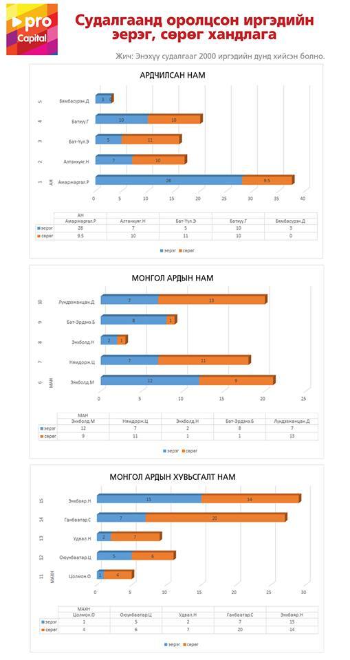 Улс төрчдийн рейтинг тогтоох судалгааг хамгийн бодитой гаргадаг цөөхөн байгууллага байдаг. Тэдний нэг бол Монгол-Германы хамтарсан “Про капитал” судалгааны төв юм. Аливаа нэг улс төрийн намын захиалгагүйгээр хийгддэг тус төвийн 2017 оны Ерөнхийлөгчийн сонгуульд нэр дэвших магадлалтай улс төрчдийн рейтингийн судалгаагаа зарлалаа.