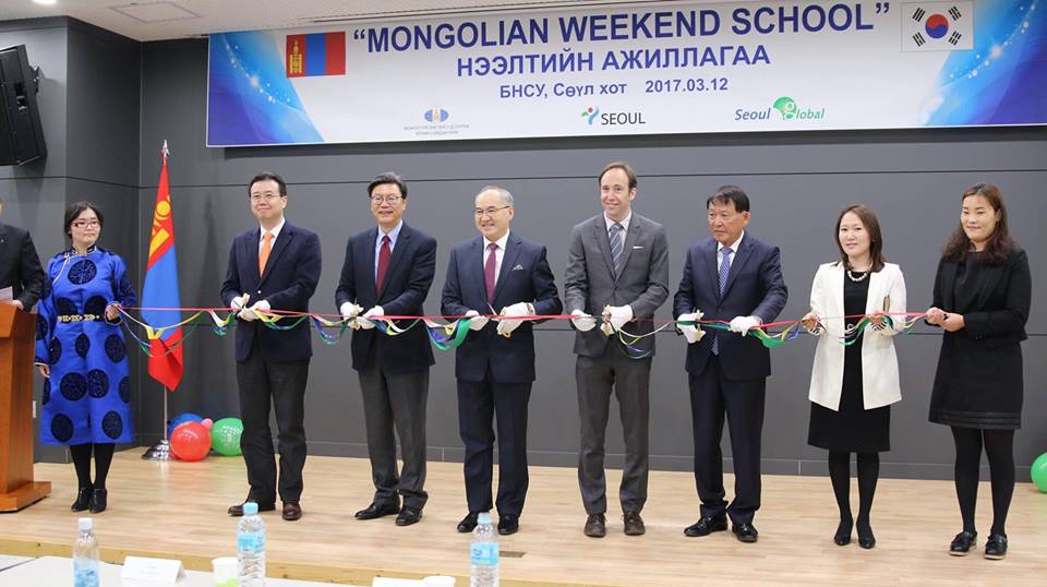 Монгол Улсаас БНСУ-д суугаа Элчин сайдын яам, Сөүл хотын захиргаатай хамтран БНСУ-д ажиллаж, амьдарч буй Монгол иргэдийн хүүхдүүдэд эх хэл, соёл, зан заншлын талаарх мэдлэгийг эзэмшүүлэх “Mongolian Weekend School” сургуулийг 2017 оны 3 дугаар сарын 12-ны өдөр “Сөүл глобал төв”-д нээсэн байна.