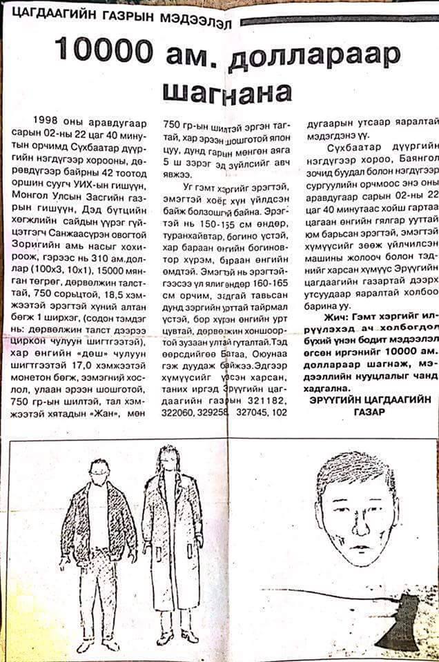 Энэ хэргийн цаана томчуудын захиалга бгаа нь ойлгомжтой хvн яргалж алсан сvгнvvд захиалагчаа. Хэлсэн л бж таараа 2-3 жилийн дараа захиалагч нь тодорхой болно бхаа хэв хил гараад зугтаад За ийм бдаг бж 2-3 жилийн дараа ил болно бхаа Булган торийн ордонд шорон vнэртvvлээд явж бдаг торийн минь сvлд хийморийг гутаасан новшийг хэн ямар учраас авчирав балиар шаарнууд