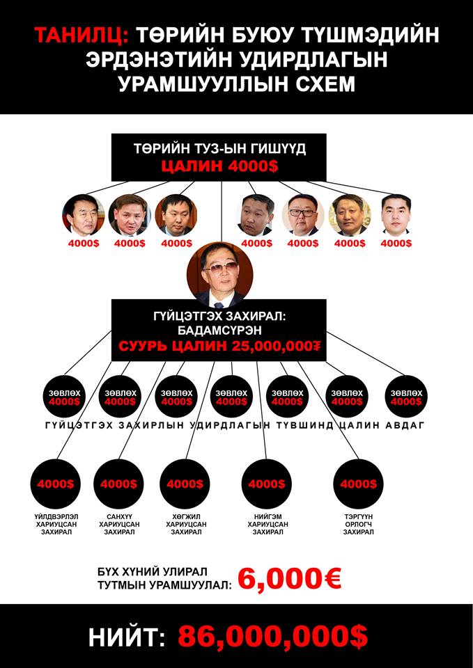 ингэж л Монголын ард түмээ хөгжүүлэх нь дээ, ухамсартай оронд бол томчууд нь 1 доллар гэх мэт билэг тэмдгийн чанартай цалин авдаг, авснаа хандивладаг. Сая Трамп гэхэд цалингаа хандивлаж байна. Манайд бол ард түмнээс арай л тасраад байна даа