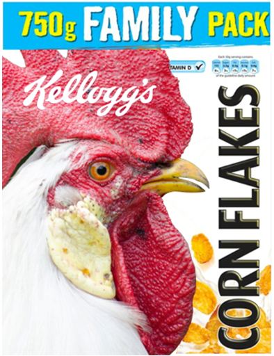 Хэрвээ Келлогг дээрх дүрийн оронд жинхэнэ азарган тахианы зураг тавьсан бол ямар байх байсан бол?