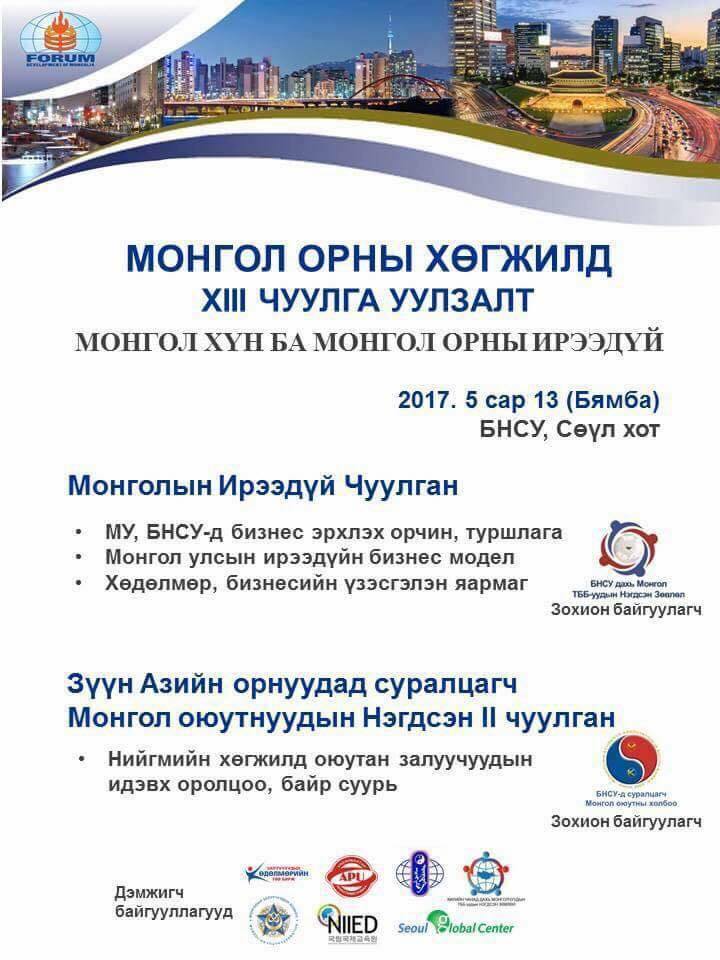 Чуулгантай холбоотой дэлгэрэнгүй мэдээллийг seoulforum2017@gmail.com хаягаар тодруулах боломжтой.