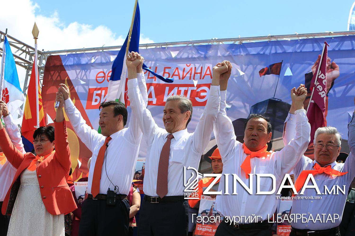 МАХН-аас нэр дэвшигч С.Ганбаатар "Та бид Монгол Улсынхаа эзэн нь болохоос боол нь биш ээ. Монголын ард түмэн өөрийн гэсэн Ерөнхийлөгчтэй болох цаг нь иржээ. Бид иргэдээ харахаар байсан МАНАН дунд хашигдаагүй. Бид хоёр намын наймааг зогсоож хөгжлийг тунхаглахаар энд цуглаад байна. Бидний ирээдүй юугаар ч сольшгүй. Бидэнд өөр гарц байна. Монгол Улсын Ерөнхийлөгчийн үндсэн үүрэг бол шударга ёсыг тогтоох юм. Гэтэл өнөөдөр хэдхэн гэр бүл баяжаад ард түмэн ядуу зүдүү амьдарч байна. Тиймээс энэ хулгайг зогсоох эрхийг хулгайчдад өгч болохгүй. Шатыг дээрээс нь шүүрддэг болохоос биш доороос нь шүүрддэггүй. Тиймээс авлигалд автсан төр засгийг хамтдаа дээрээс нь шүүрдье. МАХН-ын манлайлал дор эвлэлдэн нэгдэж Монголынхоо ирээдүйн төлөө хамтдаа зүтгэцгээе" гэлээ.