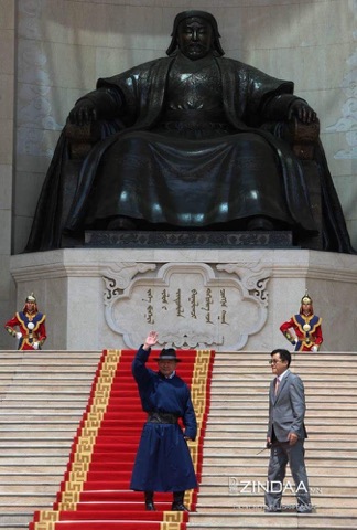 Үүний дараа Монгол Улсын Ерөнхийлөгч асан Ц.Элбэгдорж Чингисийн хөшөөнд хүндэтгэл үзүүллээ. Түүнийг шинэ Ерөнхийлөгч Х.Баттулга үдэж гаргасан юм.