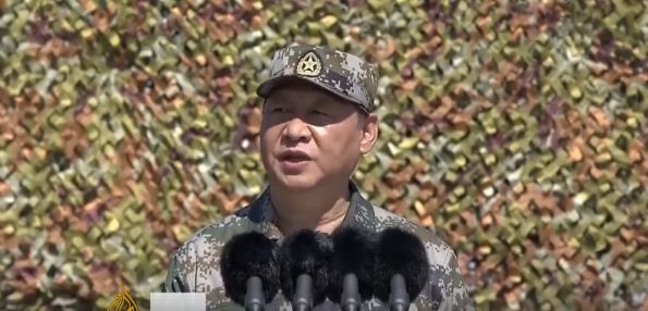 Хятадын тэргүүн Си Жин Пин парадан дээр үг хэлэхдээ “Өнөөдөр бид хятад үндэстнийг сэргэн мандуулах зорилгодоо хамгийн их ойртоод байна. Хятад улс өөрийн зорилгодоо хүрч, аюулгүй байдлаа хангахын тулд түүхэндээ байгаагүй хамгийн хүчирхэг армийг байгуулах хэрэгтэй. Одоо манай улсад хүчирхэг арми урьд урьдынхаас илүү хэрэгтэй байна. Манай арми халдан довтолсон бүх дайсныг ялж, үндэсний тусгаар тогтнолоо хамгаалан улс орны аюулгүй байдал, хөгжлийг хангах бүрэн чадвартай" гэж мэдэгдлээ.