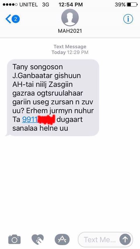 Энэ талаар Ж.Ганбаатар гишүүн байр сууриа илэрхийллээ. Тэрбээр "Тодорхой зорилготой хүмүүс үүрэн операторын сүлжээ ашиглан миний нэр хүндэд халдсан буруу ташаа мессежийг иргэдэд илгээж байгаад харамсаж байна.