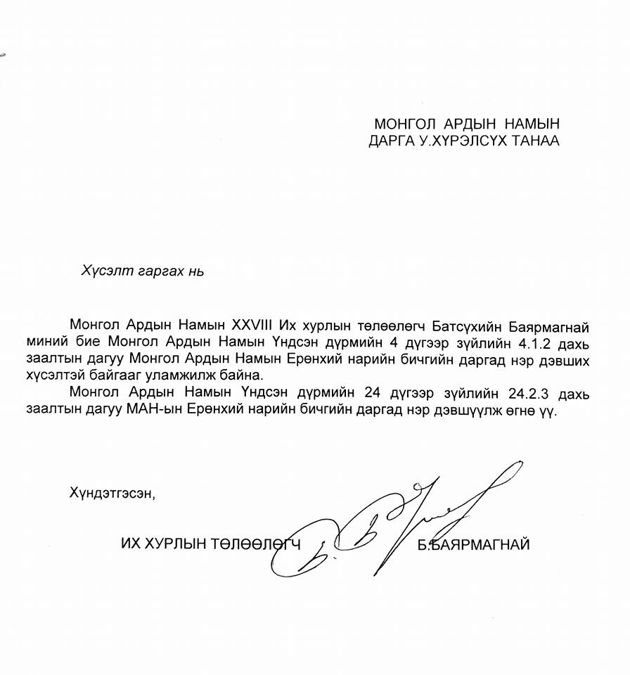 Б.Баярмагнай ЕНБД-д өрсөлдөхөө мэдэгдлээ