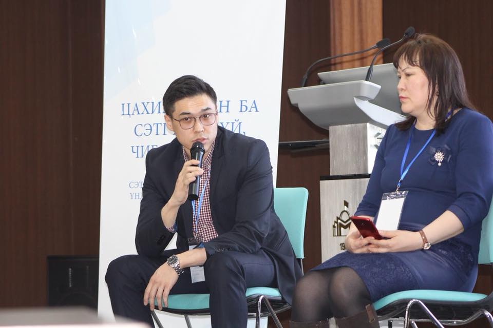Хүмүүнлэгийн ухааны их сургуулийн СМТТ-ийн эрхлэгч, доктор, профессор Д.Дагиймаа "Технологийн эрин үе дэх хэвлэл мэдээлэлд тулгарч буй сорилт, тулгамдсан асуудлууд” сэдвээр илтгэл тавилаа.